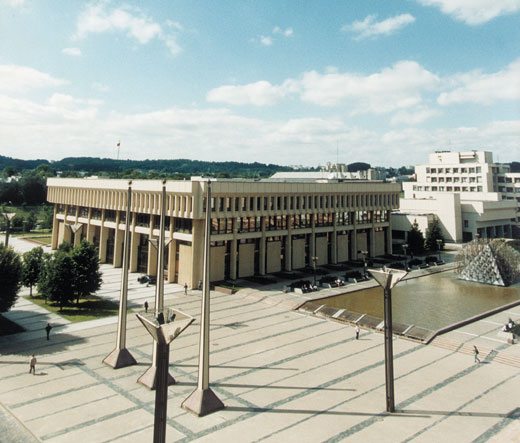 Chambre I et III du Seimas (à gauche) et la nouvelle Salle des sessions (Bâtiment II) © lrs.lt