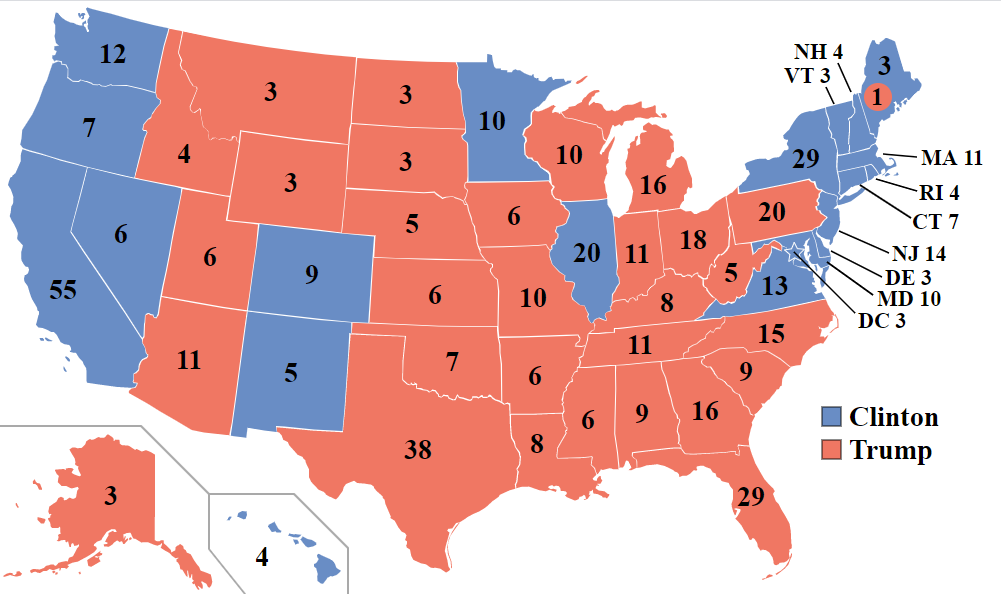 Il faut savoir que chaque État envoie un nombre de grands électeurs. Les trois États qui envoient le plus de grands électeurs sont la Californie (55), le Texas (38) et la Floride (29). Pour gagner l’élection, il faut avoir 271 grands électeurs. Donald Trump, candidat du Parti républicain, avait été élu Président des États-Unis lors des présidentielles 2016 à la surprise générale. En effet, tous les sondages donnaient la candidate démocrate Hillary Clinton vainqueur. La Pennsylvanie a été l’état gagnant pour le candidat républicain. Cela a été une surprise étant donné que cet état est gagné par les démocrates depuis les victoires de Bill Clinton.